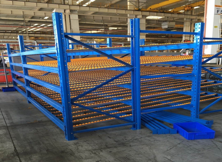 流利式货架适合大批量货物的短期存储,实现一次取货,多次拣货。